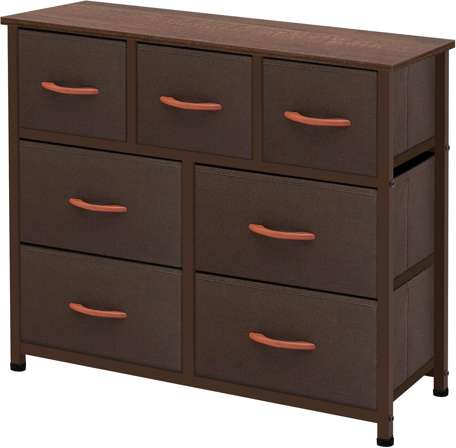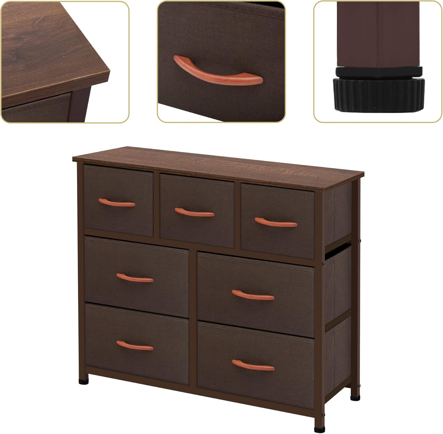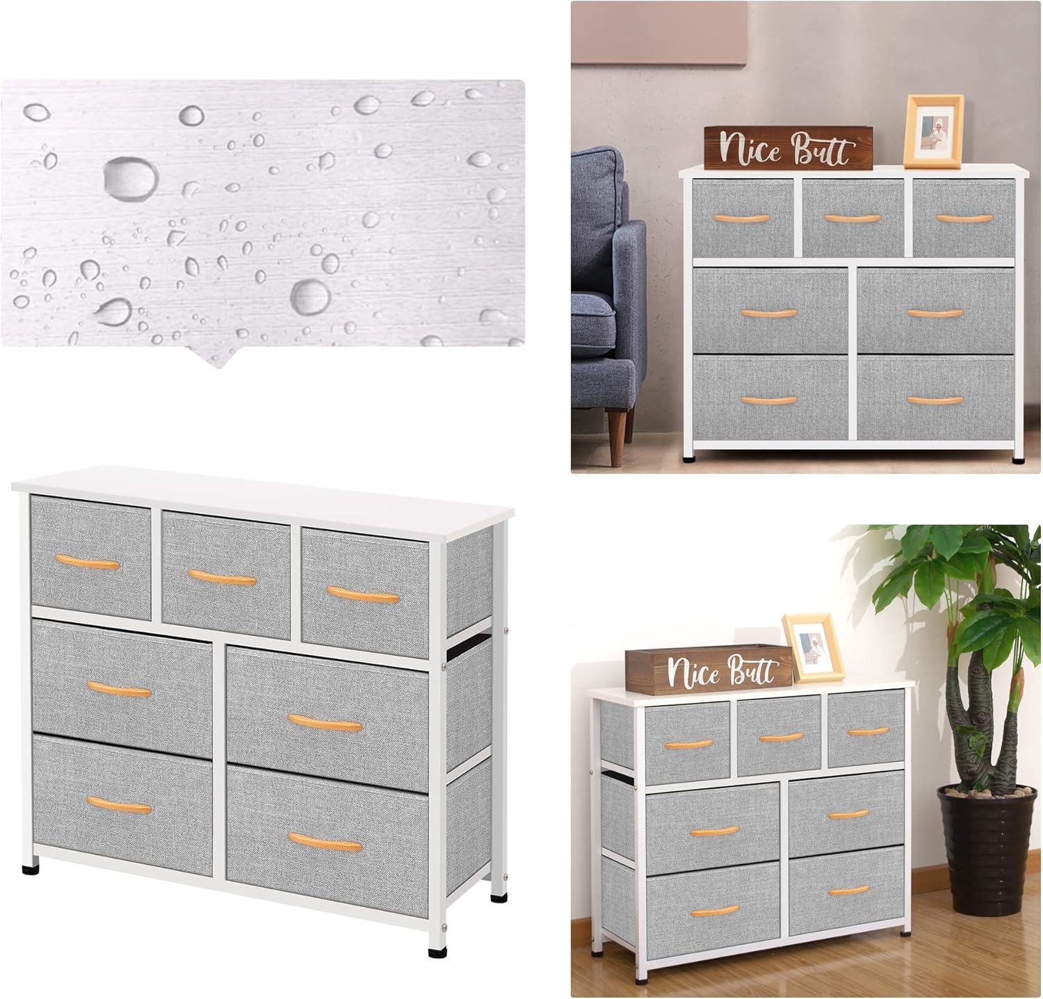 AZL1 Life Concept Storage Organizer 9-Drawer Closet Shelves, Sturdy Steel Frame Marbling Wood Top with Easy Pull Fabric Bins for Clothing