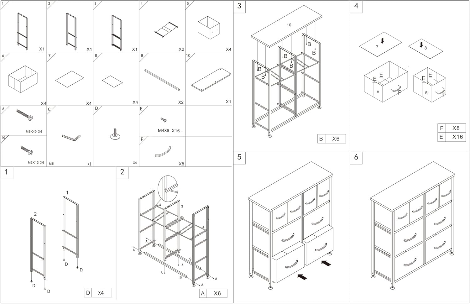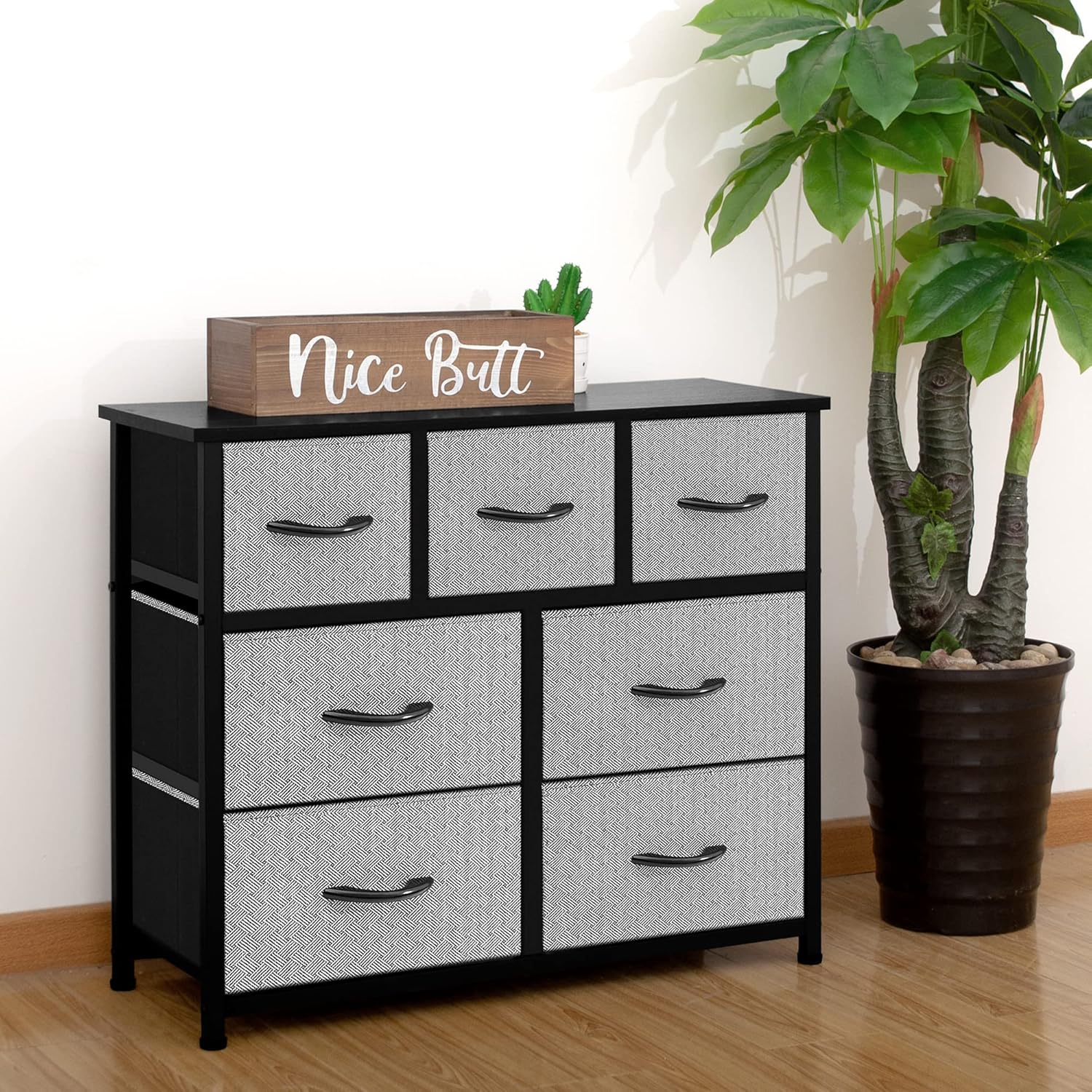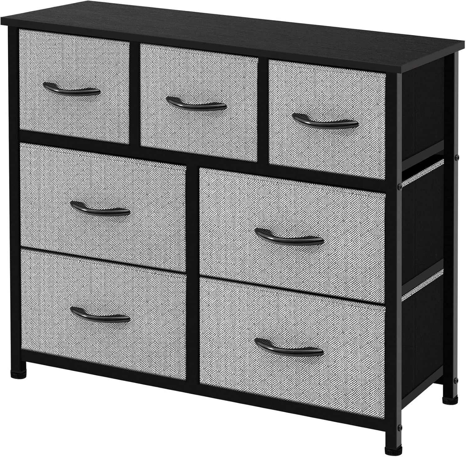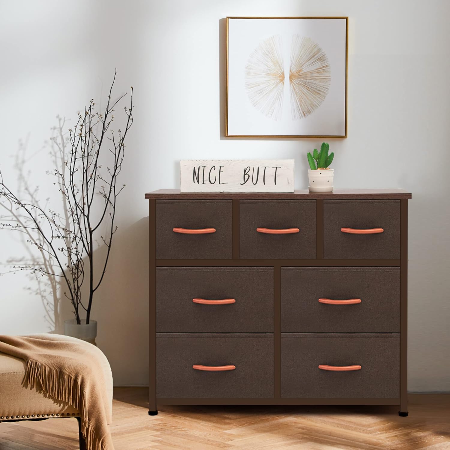 AZL1 Life Concept Storage Organizer 9-Drawer Closet Shelves, Sturdy Steel Frame Marbling Wood Top with Easy Pull Fabric Bins for Clothing